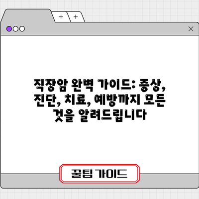 ✅ 직장암 증상부터 예방까지, 궁금한 모든 것을 한 번에 해결하세요! 지금 바로 확인하고 건강을 지키세요.